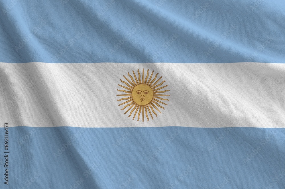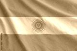 Argentina flag depicted on folded wavy fabric of old cloth close up