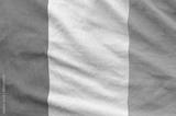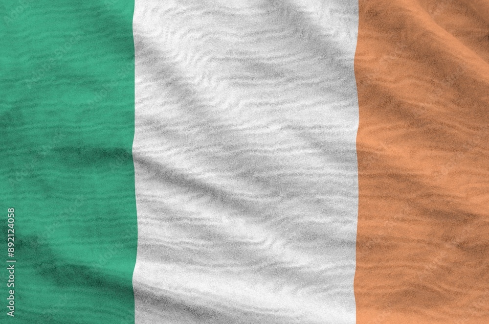 Ireland flag depicted on folded wavy fabric of old cloth close up