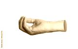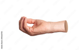 Hand reaching out, open cup-shaped gesture, side view, holding something, isolated on white background.