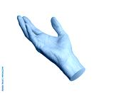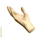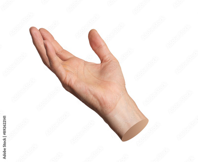 Hand reaching out, palm holding, showing something, gesture isolated on white background.
