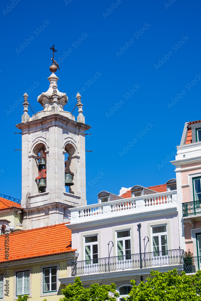 Close up view of the bell tower of church, Lisbon, Portugal.