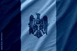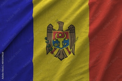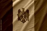 Moldova flag depicted on folded wavy fabric of old cloth close up