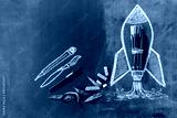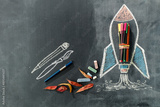 Autumn back to school concept. Chalk drawings on blackboard. and space for products. Image for montage display.