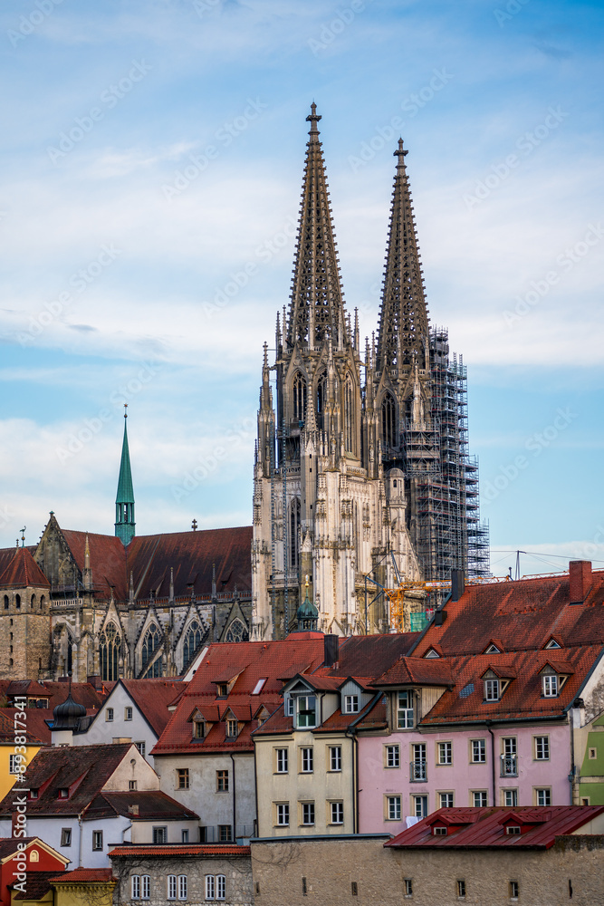 Panoramic view of Regensburg Cathedral in Germany.