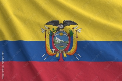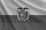 Ecuador flag depicted on folded wavy fabric of old cloth close up