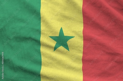 Senegal flag depicted on folded wavy fabric of old cloth close up