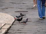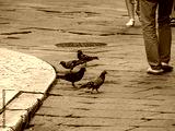 pigeon eating watermelon in Verona Italy