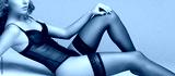 Young beautiful woman posing in sexy lingerie over colored background in studio. Girl in underwear.