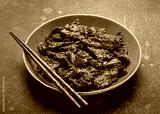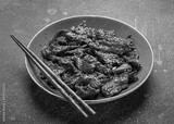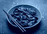 Savory plate of bulgogi, a traditional korean dish featuring grilled marinated beef on plate with chopsticks