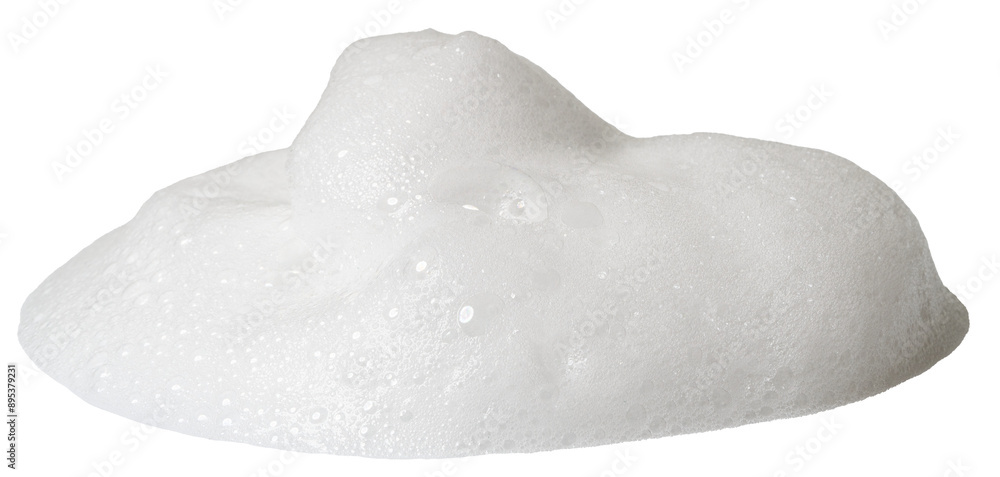 white liquid foam from soap or shampoo isolated with clipping path on background. set of detergent shower gel bubble, white foam bubbles.