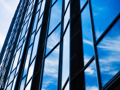 Glass facade blue sky reflection steel pattern Architecture details modern building
