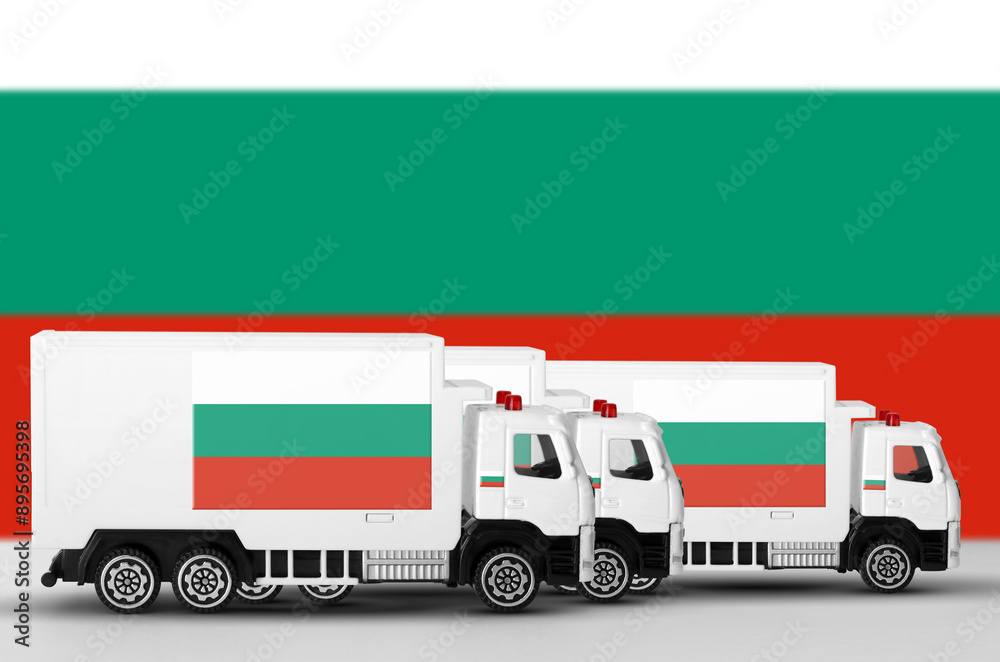 Bulgaria flag depicted on side wall of white delivery van close up. Shipping and local delivery concept