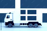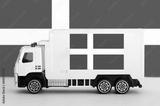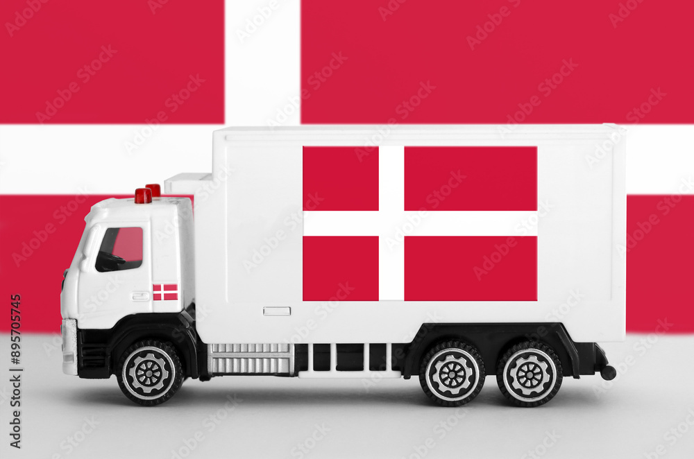 Denmark flag depicted on side wall of white delivery van close up. Shipping and local delivery concept
