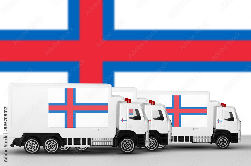 Faroe islands flag depicted on side wall of white delivery van close up. Shipping and local delivery concept