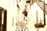 Mykonos island, Greece. Famous old town narrow street with white houses.