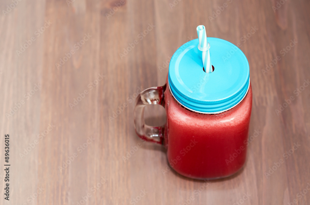 Watermelon smoothie in a mason jar