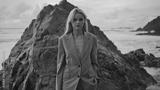 Confident woman looking camera on go at beautiful ocean coast. Fashion model