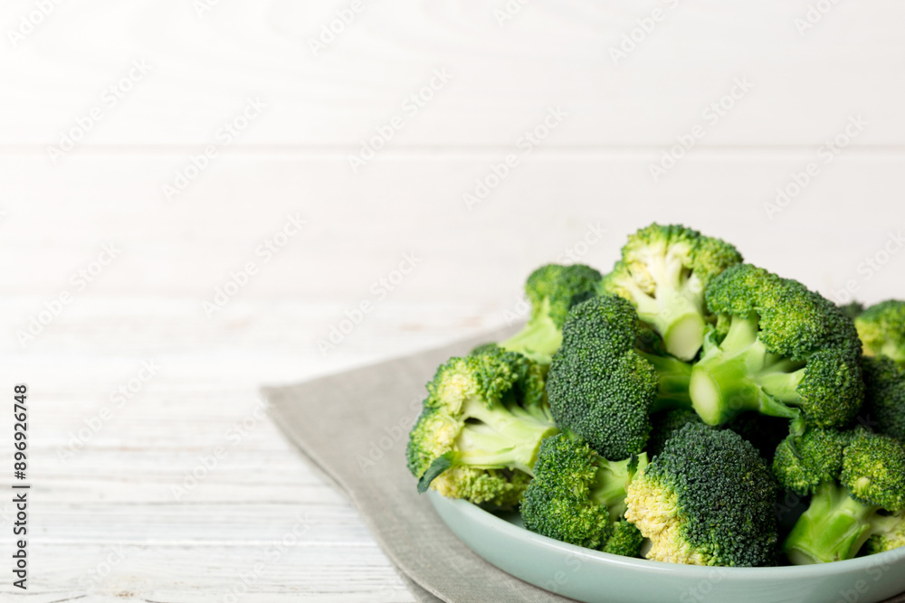 broccoli of fresh green broccoli in bowl over coloredbackground. , close up. Fresh vegetable