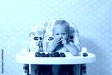 Baby girl eating strawberries