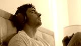Caucasian man male guy listening music headphones closed eyes enjoyment relaxing sing song gadget technology playlist radio bedroom home satisfaction earphones audio device wireless connection sound