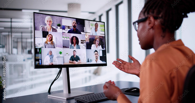 Online Video Conference Webinar On Computer. Business Videoconference