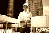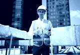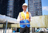 Technician smiling and thumbs up pose at water tank area or urban industrial site