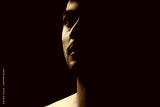 Dramatic portrait of a young guy on a black background, black and white photography, Dramatic Portrait