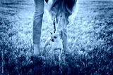 cute chihuahua puppy dog with young glamour girl walking on green lawn on the sunset, fashion street style, people pets concept