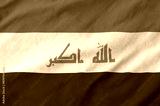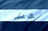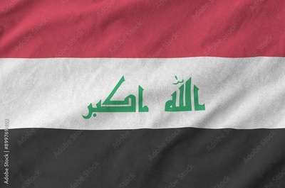 Iraq flag depicted on folded wavy fabric of old cloth close up