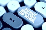 Do Not Reinvent The Wheel - means one should avoid spending time and effort creating something that already exists, text button on keyboard