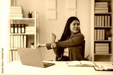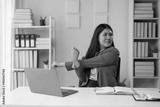 Asian businesswoman sitting in a chair tired Do some stretching exercises to relax your body after working long hours while sitting in the office. Business success concept.