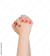 Intertwined hands with fingers clasped, symbolizing unity and support. Gesture of approval and power, with elegant manicured nails and varnished color. Isolated on white background., transparent PNG
