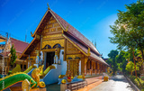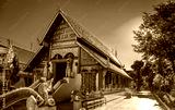 Wat Phra Singh temple is a buddhist temple located in Chiang Rai, northern Thailand. Landmark of Chiang Rai, Translation text in the image "Yung tree planted by the monks in the temple"