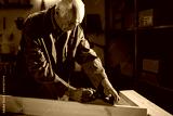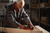Seventy-year-old carpenter using hand plane to shape wooden items
