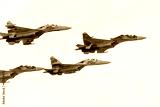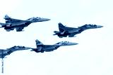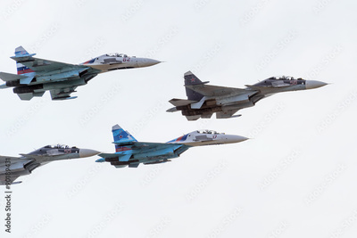 Russian team "Falcons of Russia" on Sukhoi Su-27 strike fighters flying in sky