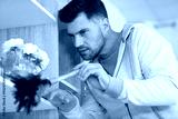 single man dusting his furnitures