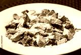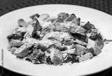 Caesar Salad, Green Lettuce Salat with Chicken and Parmesan Cheese Closeup