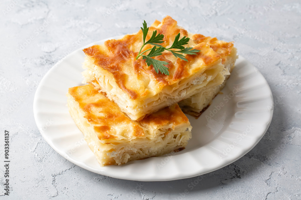 Delicious Turkish food; Tray pastry; (Turkish name; Su boregi)