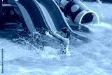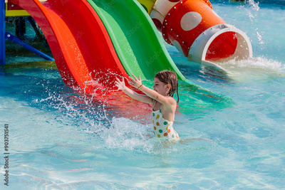 A little girl splashes happily in the pool on a sunny day. Bright colors capture the essence of summer fun and carefree moments. Ideal for family and children's materials.