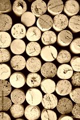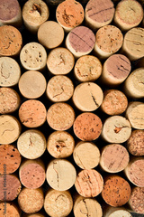 Background of wine corks. A set of red and white wine corks. Top view.