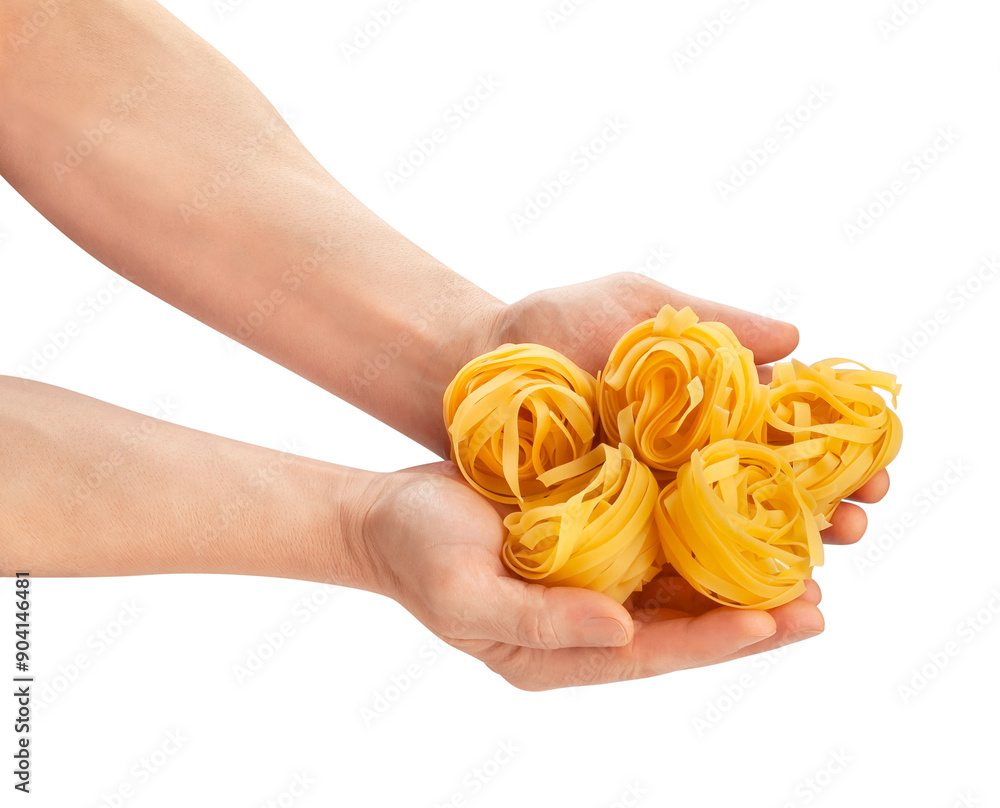 pasta tagliatelle in hand path isolated on white