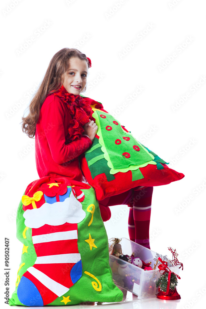 Little girl holding the santa claus bag