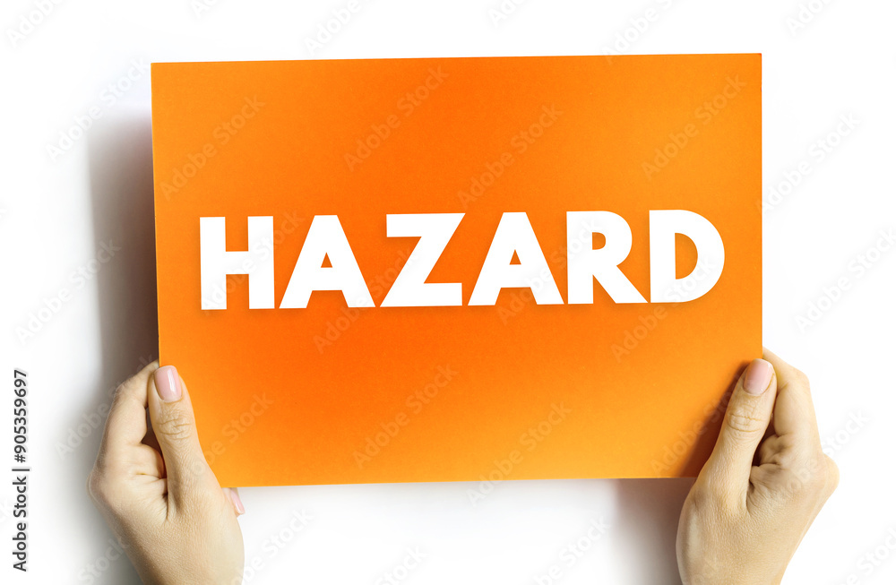 Hazard - something that is dangerous and likely to cause damage, text concept on card
