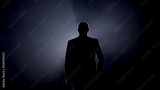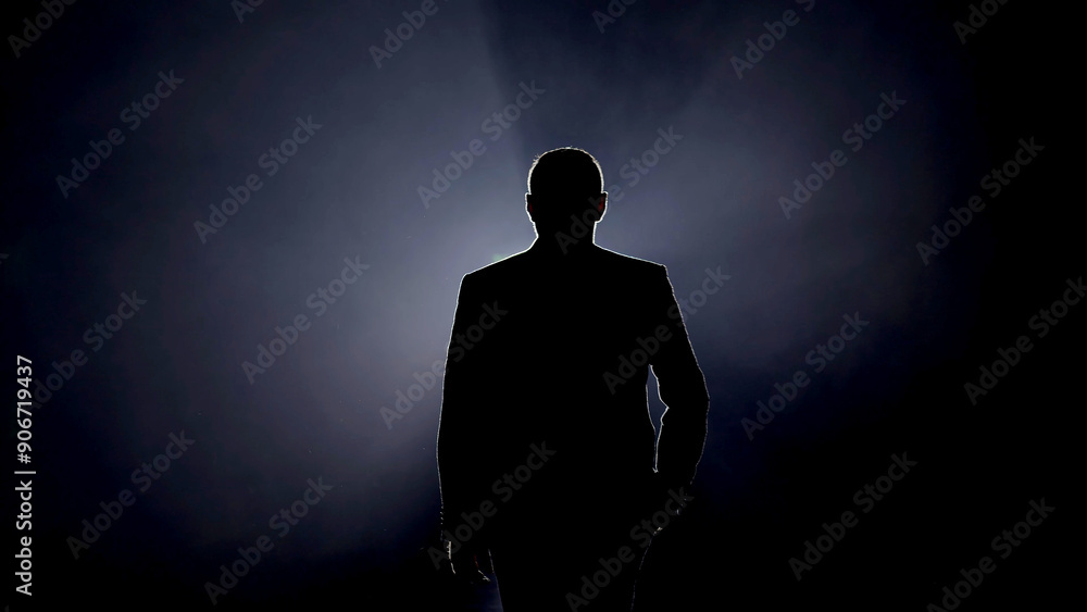 Silhouette of a man in classic suit against a backlight. A sophisticated and elegant image ideal for highlighting professionalism, formal events, and stylish fashion.