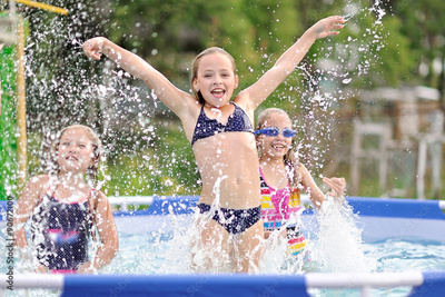 Portrait of children on the pool in summer