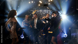Young adults dancing at a disco on a weekend evening, illuminated by colorful light effects. A vibrant and energetic scene ideal for promoting nightlife, modern music, and entertainment.