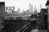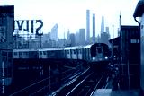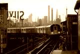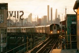 7 Train approaching at sunset, at Queensboro Plaza Station, Queens, New York