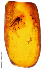 male nonbiting midge (Chironomidae) imprisioned in amber from Bitterfeld, Germany isolated on white background