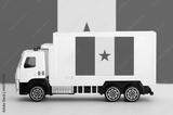 Senegal flag depicted on side wall of white delivery van close up. Shipping and local delivery concept