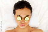 Woman enjoying spa, having cucumber on eyes